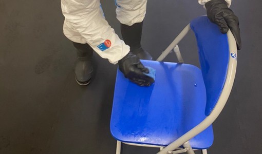 それから机、ロッカー、椅子などを必ず一方通行で拭き上げしてください。