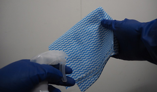また机、ロッカー、椅子などへ直接、消毒剤入りスプレーで噴霧しないこと。