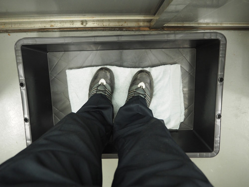 意外と盲点なのが、靴のウラにウイルスが付着して、外から社内の床へウイルスを広げてしまうことです。