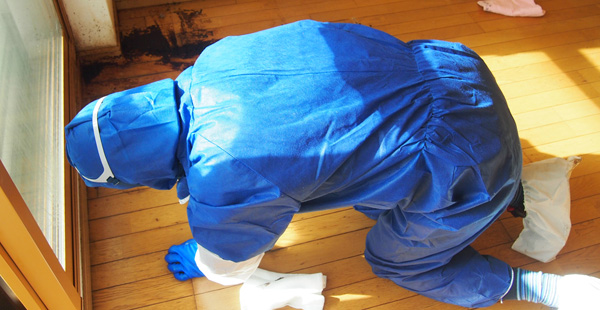 - 遺体発見まで放置期間が長かった孤独死では経験上、床下も体液等で汚染されており床下の清掃を行います。