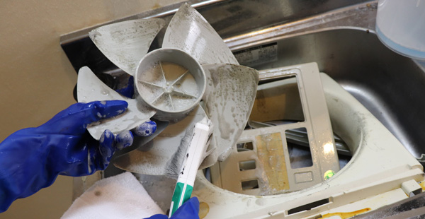 汚染箇所の清掃と「荒消臭」からスタート致します。