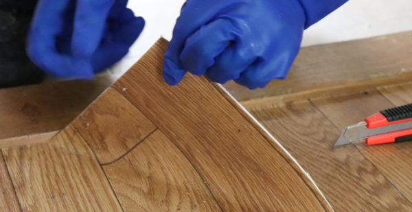 クッションフロアの上で孤独死した場合、カッターやPタイルスクレーパー などを活用して汚染箇所を取り除きます。こちらもコンクリートスラブの上に糊付けしていることも多く、この際は体液が染み込んだ糊もきちんと除去する必要性があります。