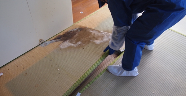 「フローリング」「フロアタイル(PVCフローリング)」「カーペット」「クッションフロア」「畳」などの床上で孤独死した場合、当然発見が長引く程、床下まで汚染されてしまいます。